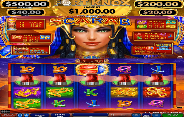 The High Priestess in Scarab is ready to bestow her blessings upon those who are worthy! Including the Fort Knox progressive jackpot bonus!