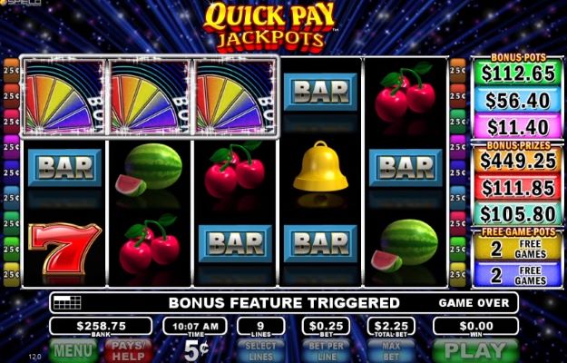 This traditional game pays in so many ways. Spin the wheel to receive random bonus prizes, increasing bonus pots, or increasing bonus spins with mystery prize amounts.