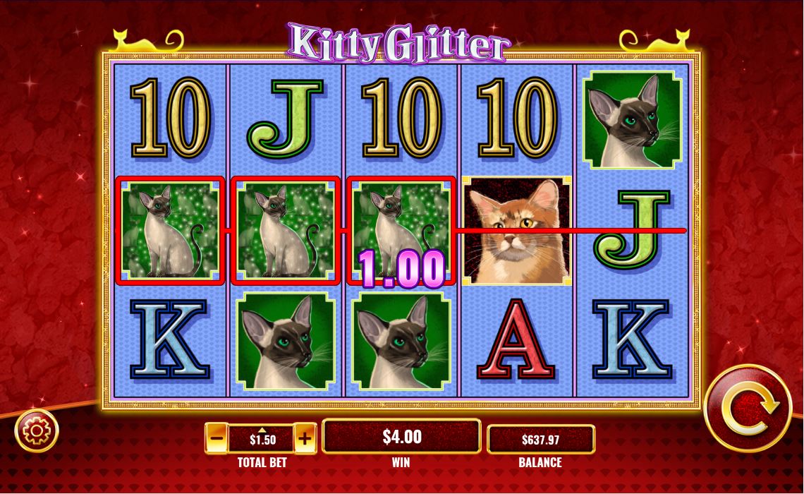 Trigger the Free Spins Bonus by getting 3 Bonus symbols anywhere on the middle three reels. Start the Bonus with 15 free spins with the opportunity to retrigger the bonus multiple times. Collect wild diamond symbols and watch as more and more cat symbols become wild!