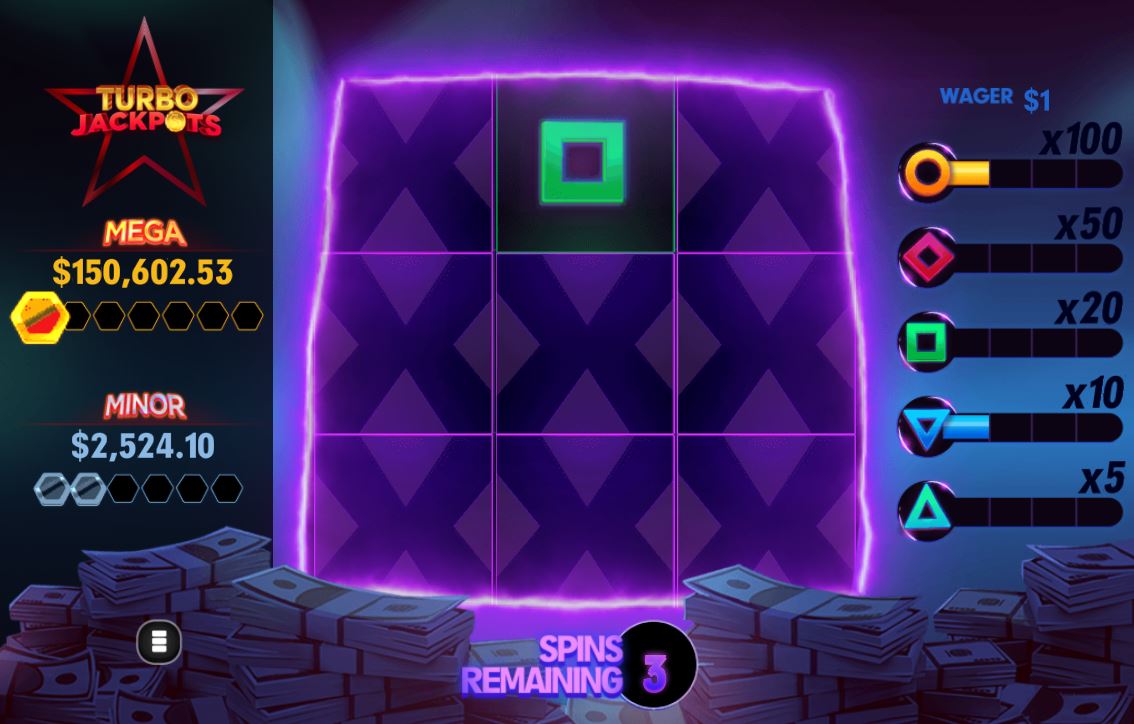 • If a symbol is on the board when a winning pattern is revealed that multiplier gets added to the Multiplier Total for that game.
