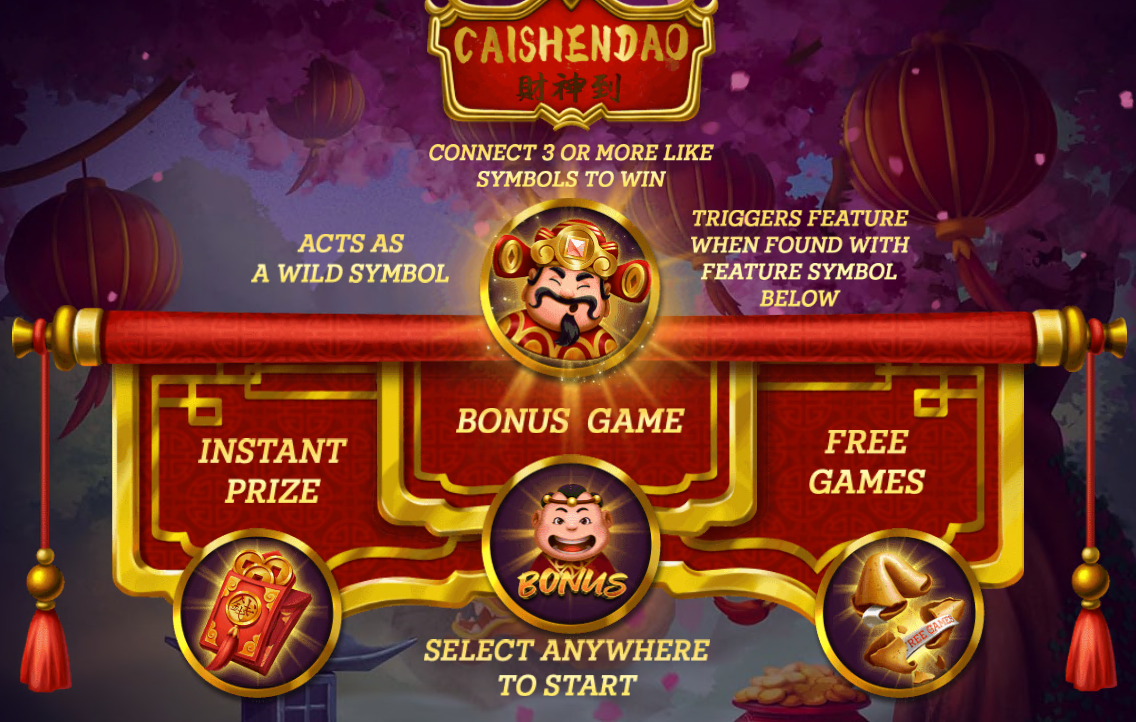 • Reveal a symbol on the game board AND a Cai Shen Dao symbol in the MIDDLE SQUARE to win the Instant Prize.