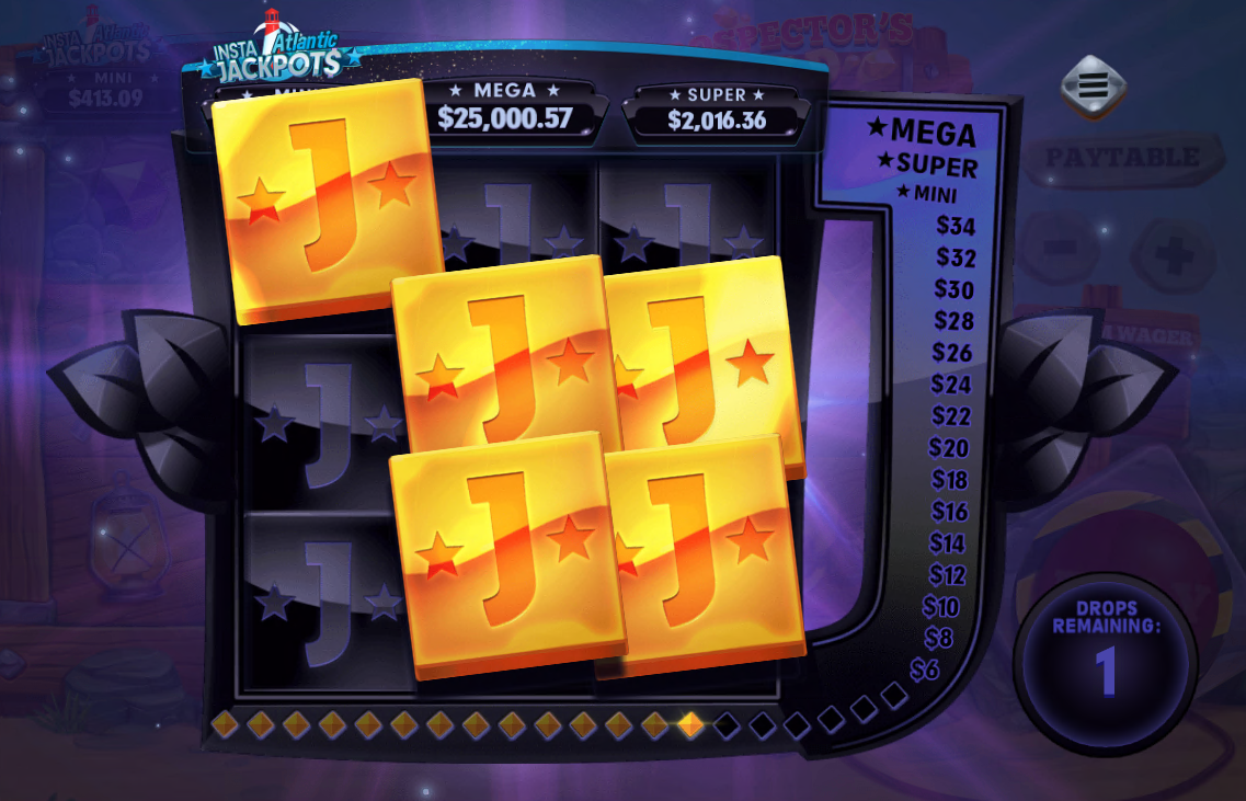 If the player collects enough [J] symbols to highlight the SUPER on the prize table the player is awarded the SUPER INSTA JACKPOT prize amount. Only the SUPER INSTA JACKPOT prize is awarded to the player.