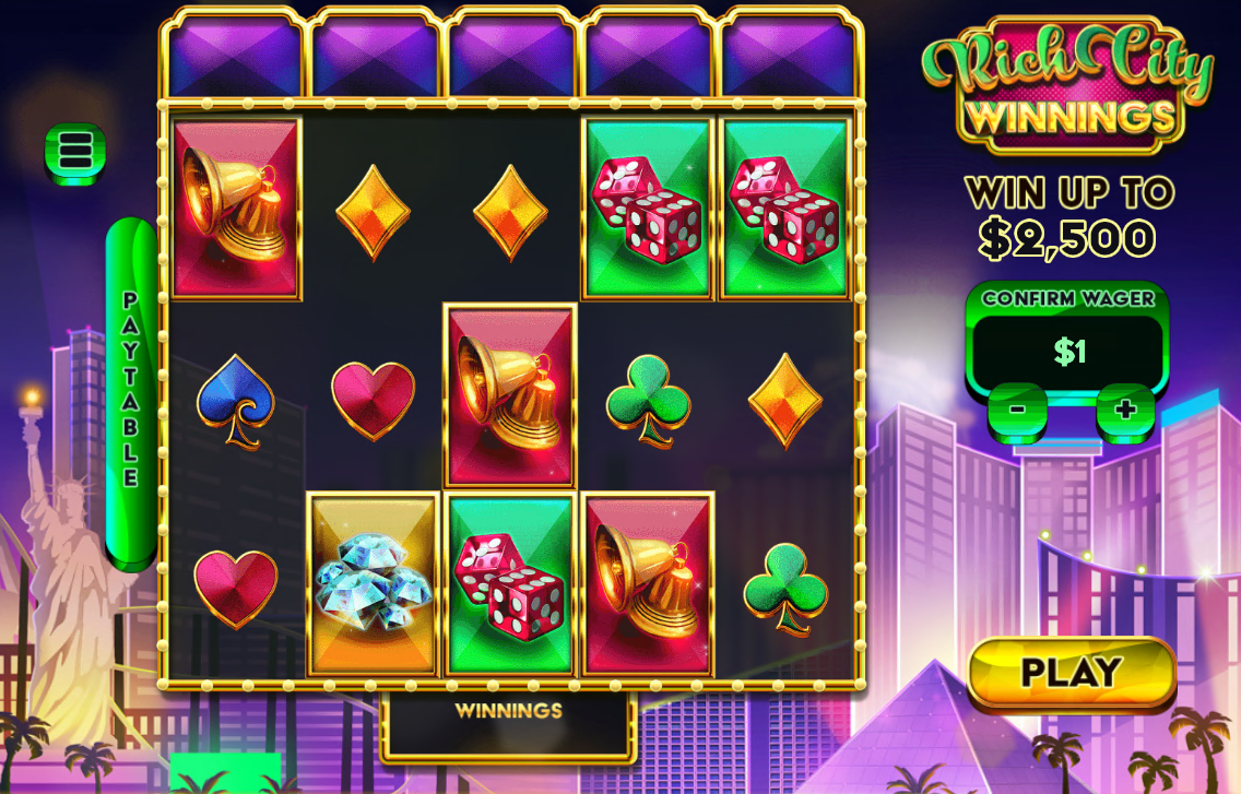 Press PLAY and the symbols will fall into place on the 5x3 game board.