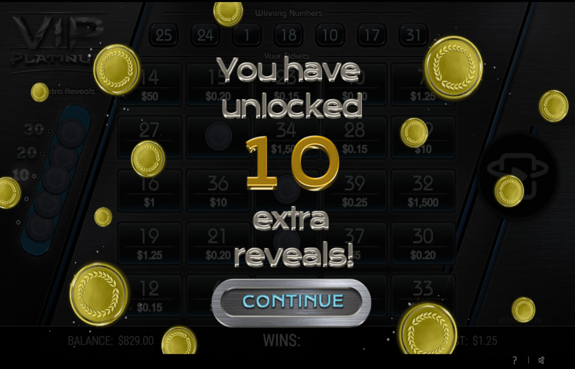 Match any of the Winning Numbers to a number on Your Tickets to win the prize shown on that ticket. Reveal 3 or more Platinum Coins to play through Extra Reveals once all tickets purchased have been revealed.