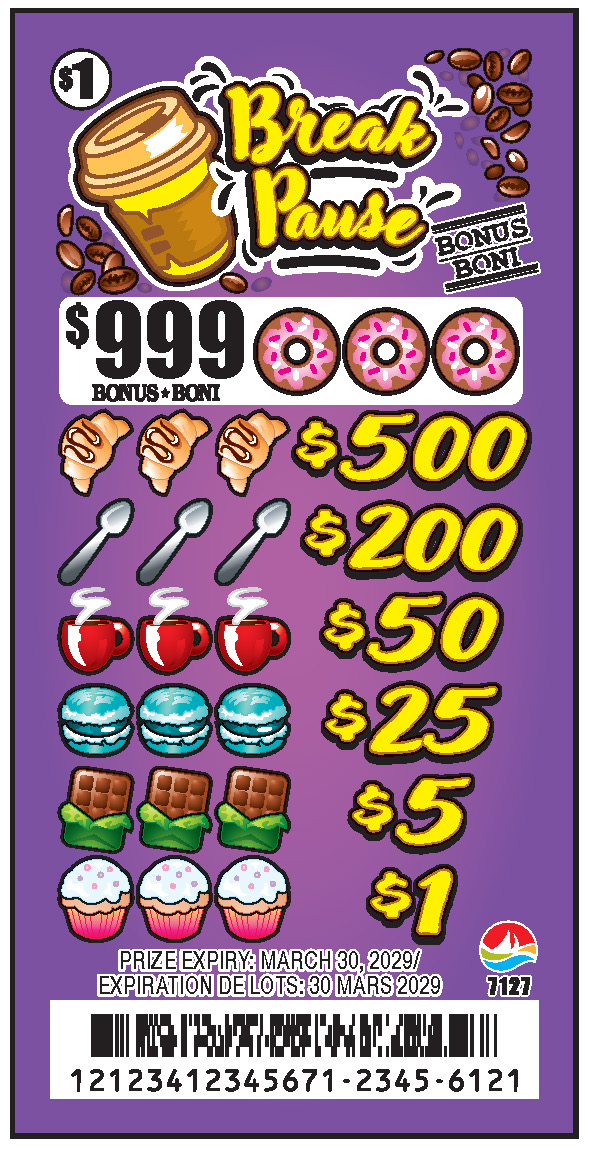 Remarque : Ce billet à languettes est doté d'un code-barres. Les billets à code-barres peuvent être validés dans tous les points de vente équipés d'appareils de loterie.