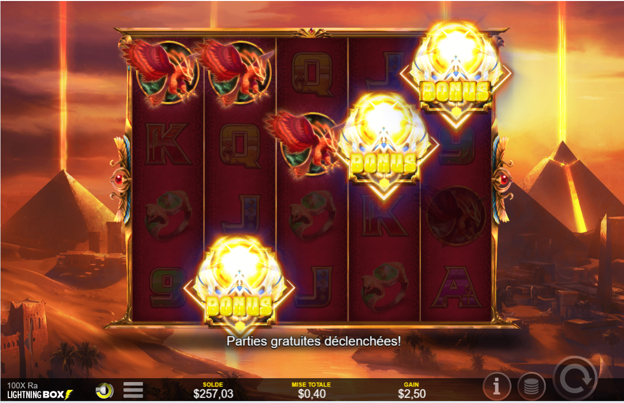 *Jeu démo: les mises minimales et maximales peuvent différer du jeu en argent réel, mais les tables de paiements ainsi que le taux de remise théorique demeurent inchangés.