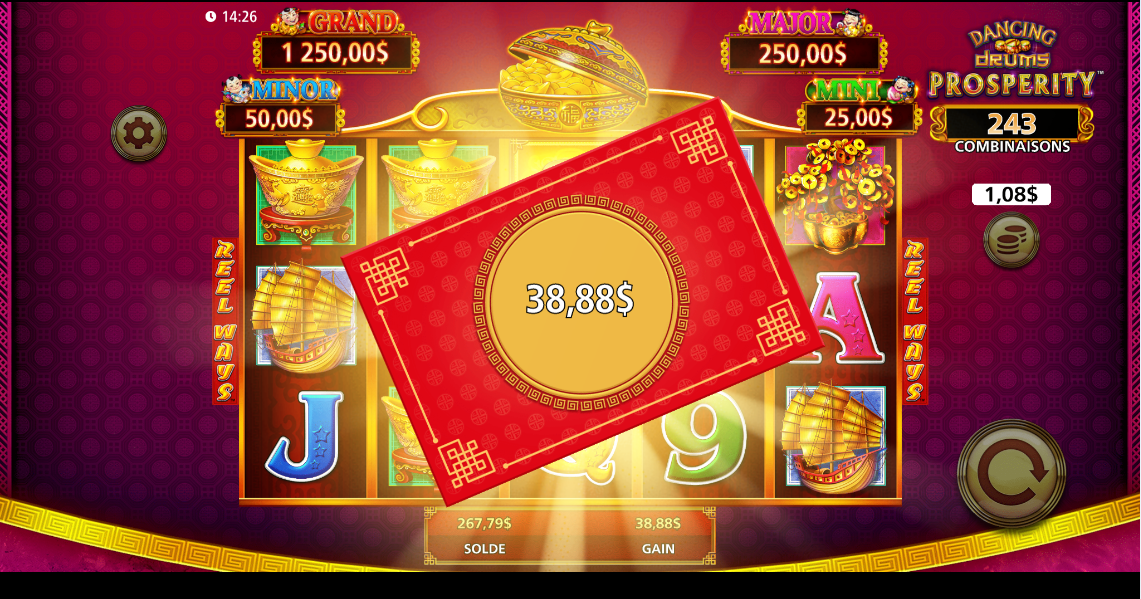 *Jeu démo : les mises minimales et maximales peuvent différer du jeu en argent réel, mais les tables de paiements ainsi que le taux de remise théorique demeurent inchangés.