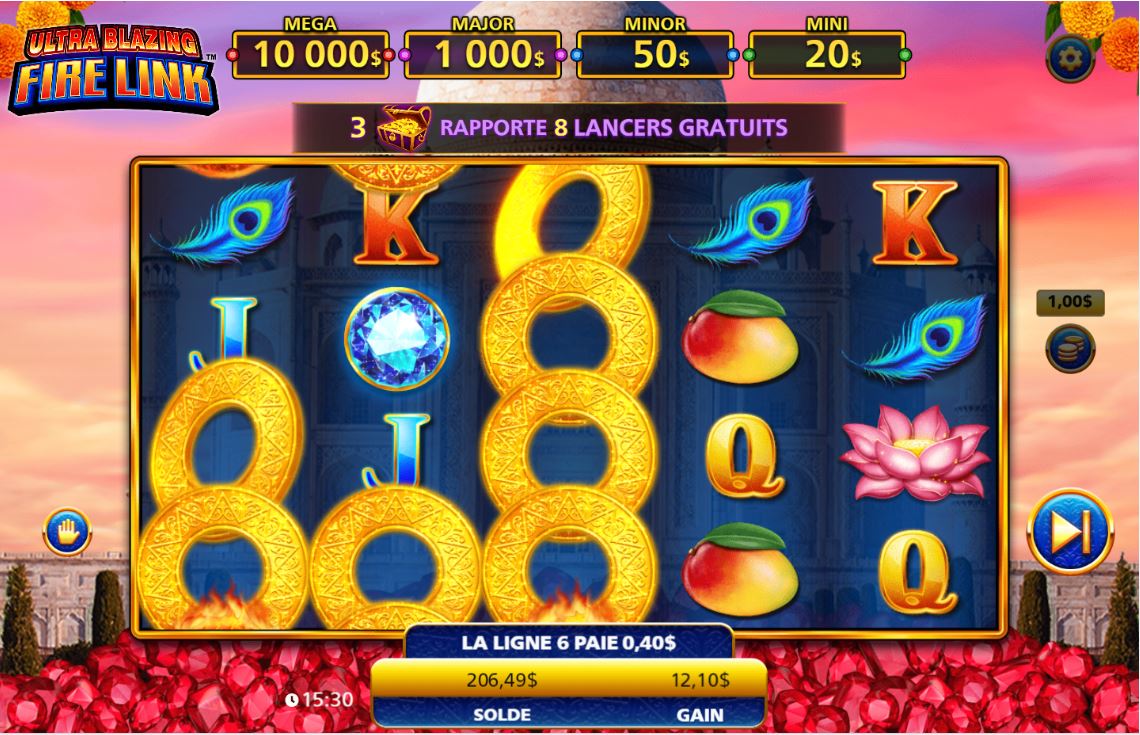 *Jeu démo: les mises minimales et maximales peuvent différer du jeu en argent réel, mais les tables de paiements ainsi que le taux de remise théorique demeurent inchangés.