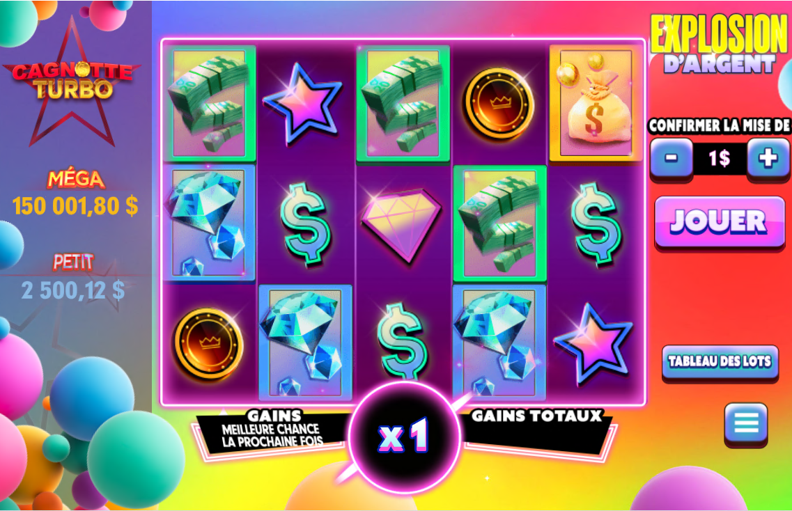 · Les multiplicateurs ne s’appliquent pas aux gains du Jeu Cagnotte Turbo.