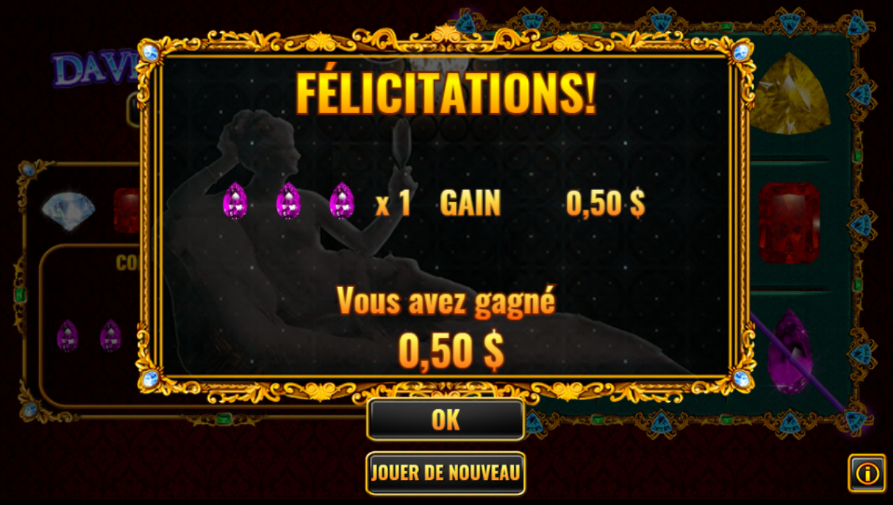 | 0 | Diamant, Diamant, Diamant X 3 | 10 000,00 $ |